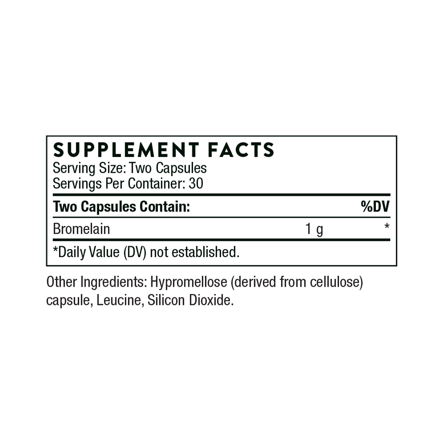 Ingredients | Bromelain. Other Ingredients: Hypromellose Capsule, Leucine, Silicon Dioxide. |