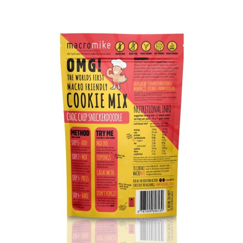 Ingredients | Organic rice flour, peanut flour, organic coconut flower nectar, organic pea protein, erythritol (natural sweetener), organic brown rice protein, organic vegan chocolate chunks (cocoa butter, raw sugar, cocoa mass, cocoa powder) organic coconut milk powder, organic natural flavours, gluten free baking powder, organic guar gum, himalayan rock salt, cinnamon, organic stevia (steviol glycosides). |