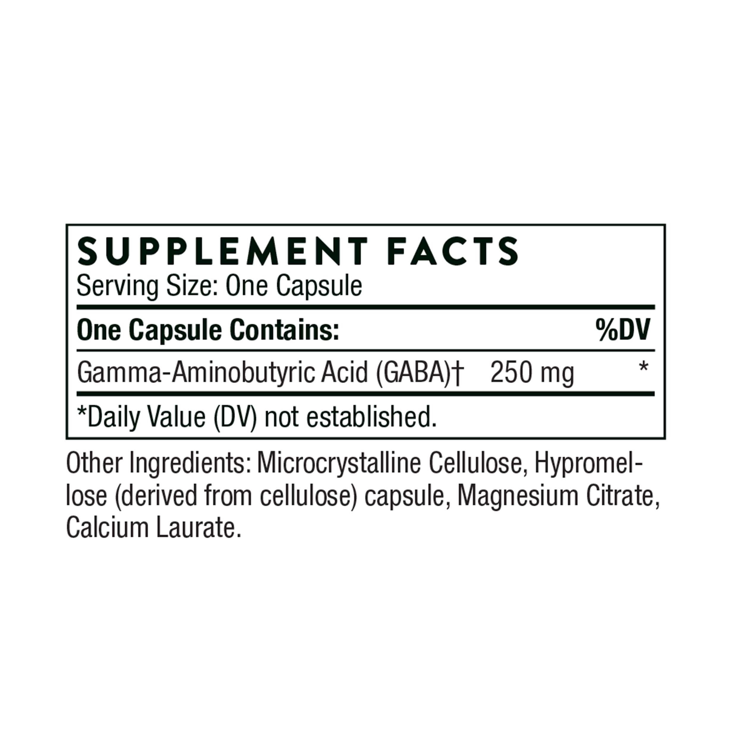 | Ingredients | Gamma-Aminobutyric Acid (GABA) 250mg. Other Ingredients: Calcium Laurate, Hypromellose Capsule, Magnesium (Citrate), Microcrystalline Cellulose | |||||